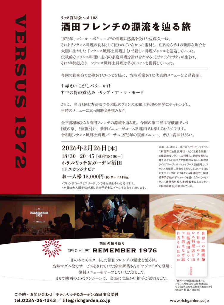 前回は「REMEMBER 1976」と題し、酒田フレンチの源流を辿り当時日本一と言われたフランス料理の復刻メニューをお召し上がりいただきました。