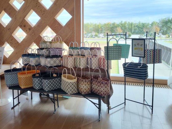 梱包用のPPバンドを使い、軽くて丈夫、そしてデザイン性のたかいプラカゴバッグを製作するお店。