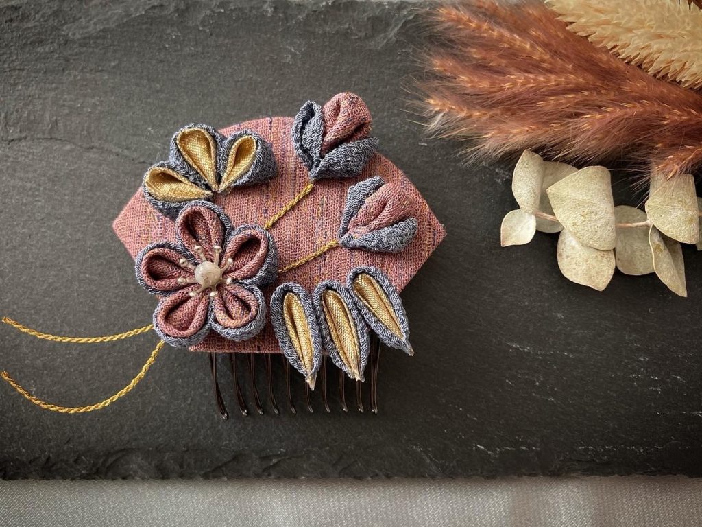 当日は、つまみ細工の小物やアクセサリーを販売。繊細な手仕事が、装いにさりげない華やかさを添えます。贈り物にもおすすめです。