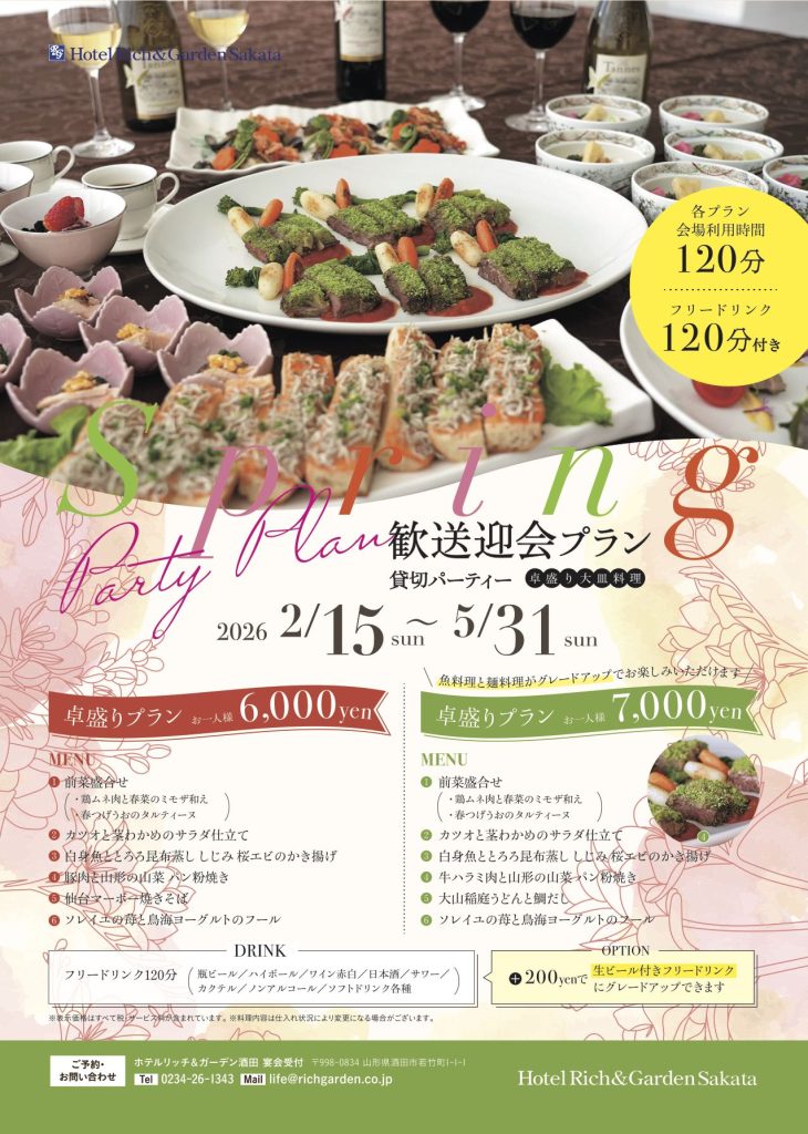 大切な節目の時間を、ホテルリッチ&ガーデン酒田の歓送迎会プランでお手伝いいたします。
